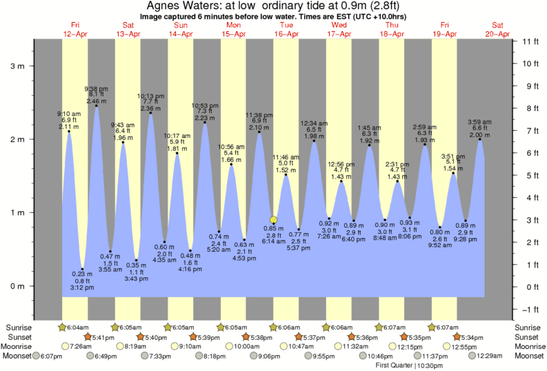 Image captured 6 minutes before low water (at low ordinary tide). Tide height was 0.9m (2.8 ft). Range 3.20m (10.5 ft). Toggle tide graph