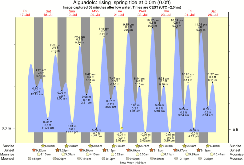 Image captured 58 minutes after low water (rising spring tide). Tide height was 0.0m (0.0 ft). Range 0.25m (0.8 ft). Toggle tide graph