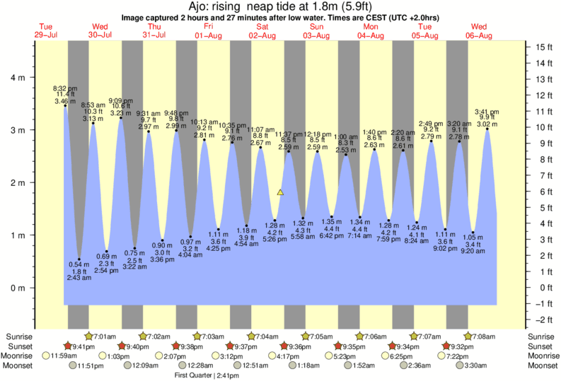 Image captured 2 hours and 27 minutes after low water (rising neap tide). Tide height was 1.8m (5.9 ft). Range 4.57m (15.0 ft). Toggle tide graph
