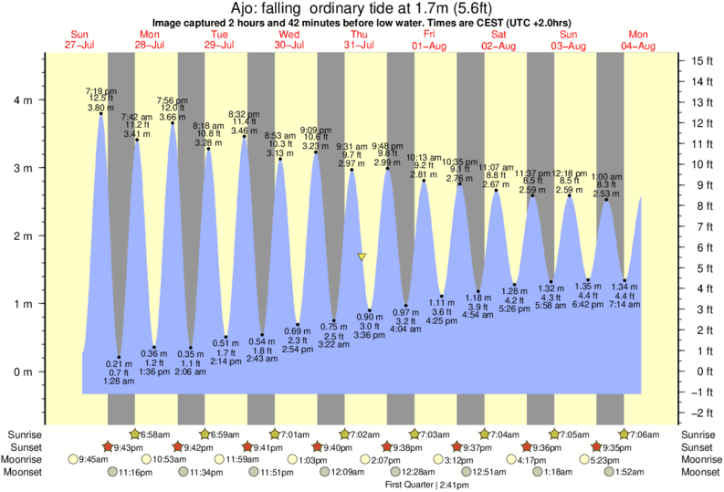 Image captured 2 hours and 42 minutes before low water (falling ordinary tide). Tide height was 1.7m (5.6 ft). Range 4.57m (15.0 ft). Toggle tide graph