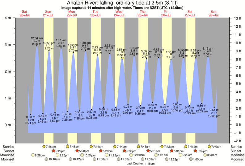 Image captured 44 minutes after high water (falling ordinary tide). Tide height was 2.5m (8.1 ft). Range 3.91m (12.8 ft). Toggle tide graph
