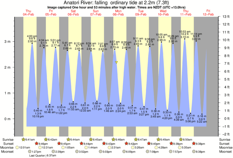 Image captured One hour and 53 minutes after high water (falling ordinary tide). Tide height was 2.2m (7.3 ft). Range 3.87m (12.7 ft). Toggle tide graph