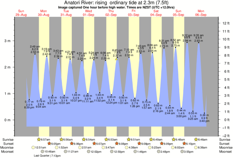 Image captured One hour before high water (rising ordinary tide). Tide height was 2.3m (7.5 ft). Range 3.78m (12.4 ft). Toggle tide graph