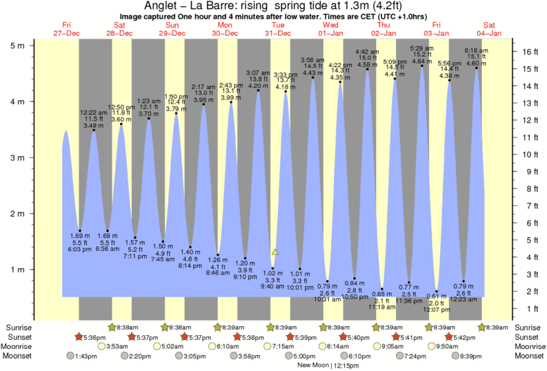 Image captured One hour and 4 minutes after low water (rising spring tide). Tide height was 1.3m (4.2 ft). Range 4.19m (13.7 ft). Toggle tide graph