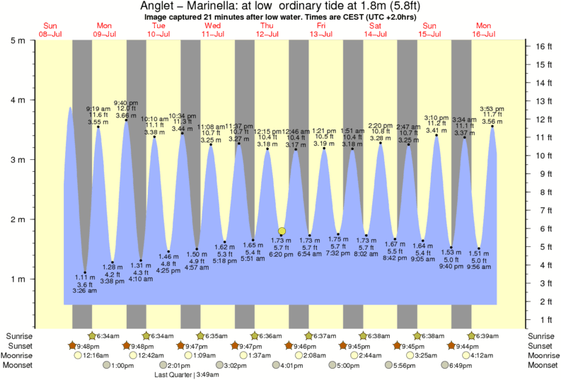 Image captured 21 minutes after low water (at low ordinary tide). Tide height was 1.8m (5.8 ft). Range 4.03m (13.2 ft). Toggle tide graph