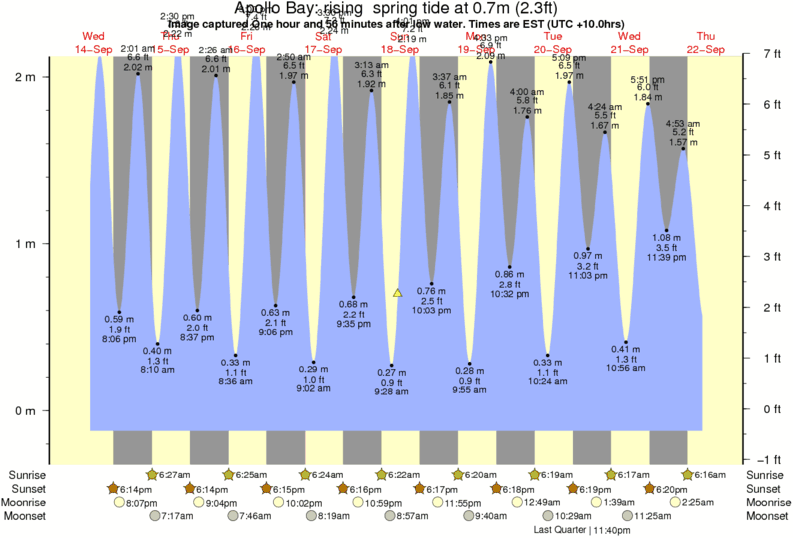 Image captured One hour and 56 minutes after low water (rising spring tide). Tide height was 0.7m (2.3 ft). Range 2.04m (6.7 ft). Toggle tide graph