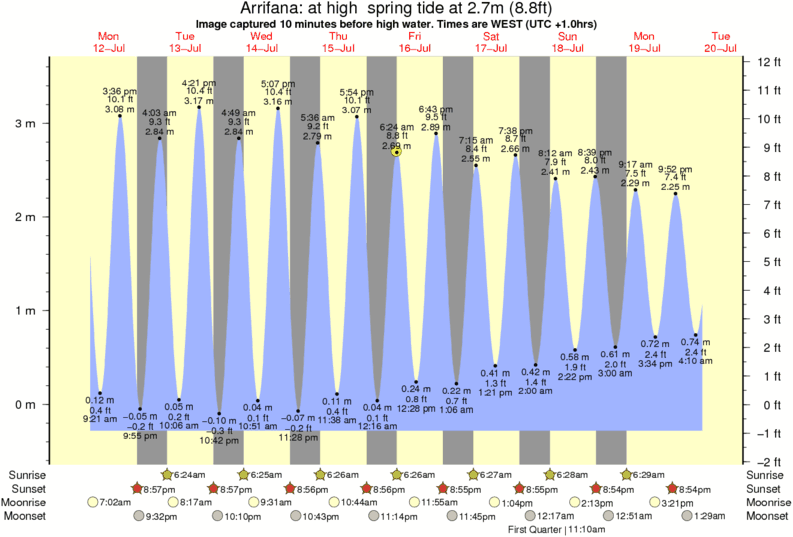Image captured 10 minutes before high water (at high spring tide). Tide height was 2.7m (8.8 ft). Range 3.63m (11.9 ft). Toggle tide graph