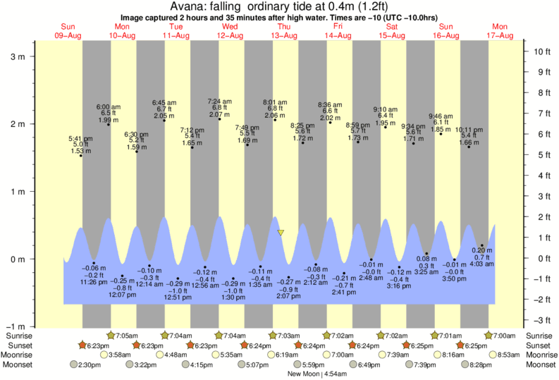 Image captured 2 hours and 35 minutes after high water (falling ordinary tide). Tide height was 0.4m (1.2 ft). Range 3.55m (11.6 ft). Toggle tide graph