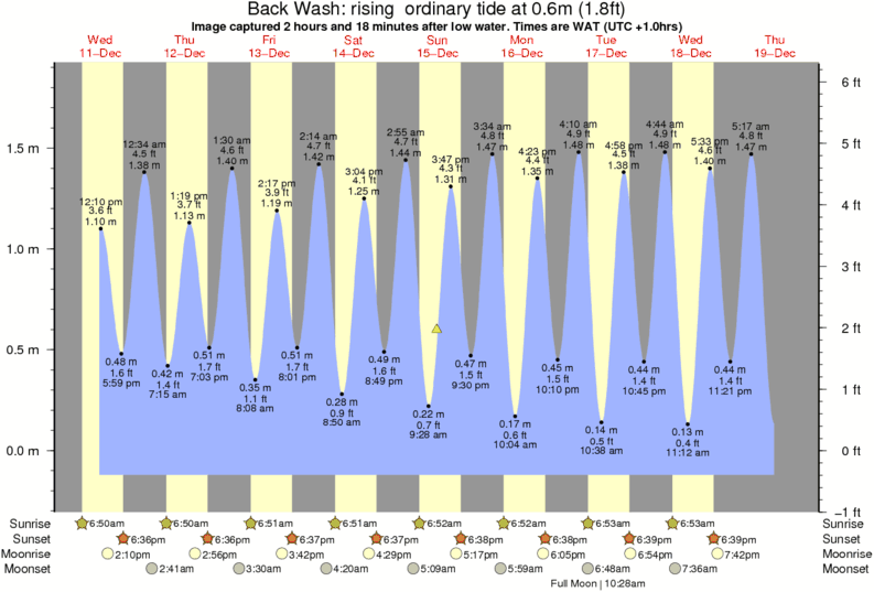 Image captured 2 hours and 18 minutes after low water (rising ordinary tide). Tide height was 0.6m (1.8 ft). Range 1.86m (6.1 ft). Toggle tide graph
