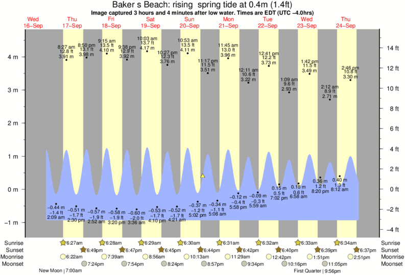 Image captured 3 hours and 4 minutes after low water (rising spring tide). Tide height was 0.4m (1.4 ft). Range 5.24m (17.2 ft). Toggle tide graph