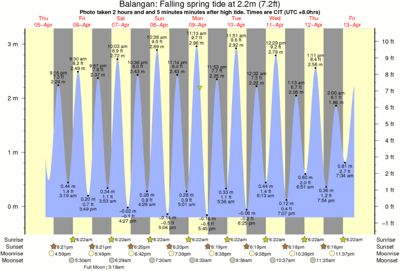 Image captured 2 hours and 4 minutes after high water (falling spring tide). Tide height was 2.2m (7.2 ft). Range 3.17m (10.4 ft). Toggle tide graph