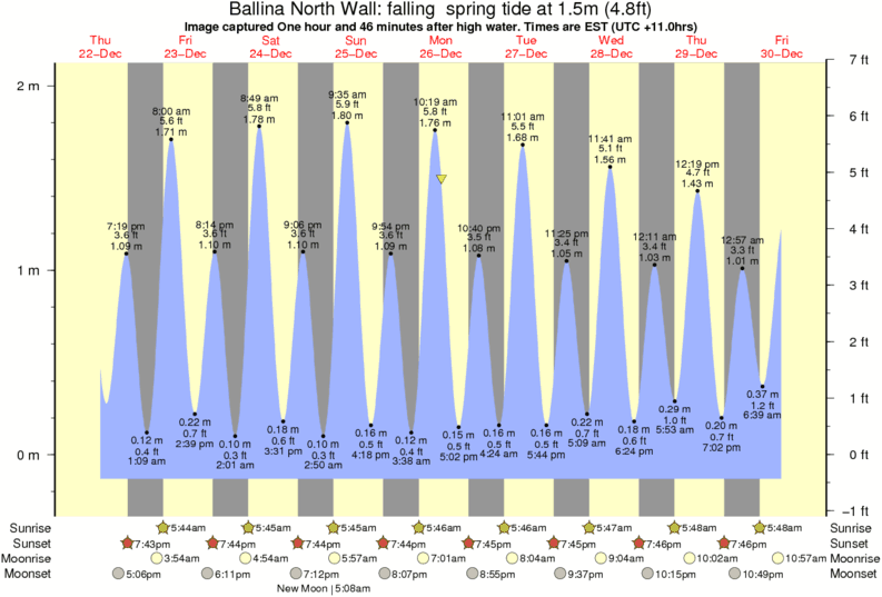 Forecast wind and swell just offshore from Ballina North Wall around the time the photo was taken