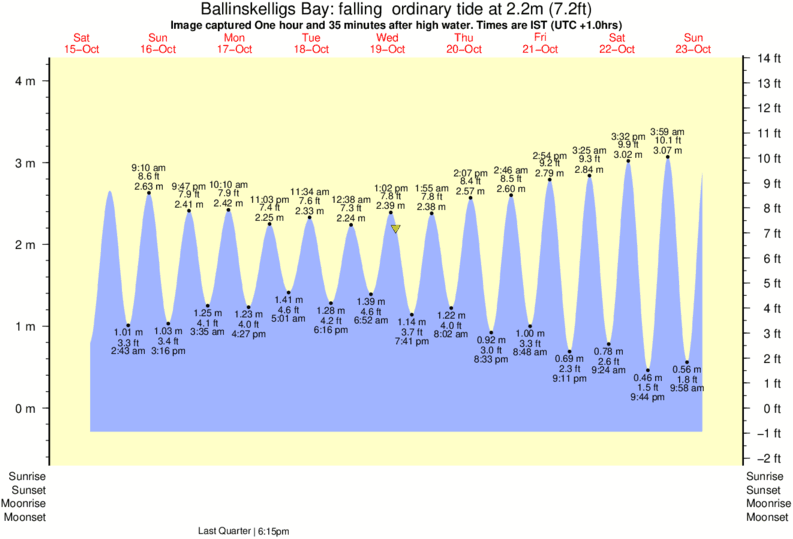 Image captured One hour and 35 minutes after high water (falling ordinary tide). Tide height was 2.2m (7.2 ft). Range 4.16m (13.6 ft). Toggle tide graph