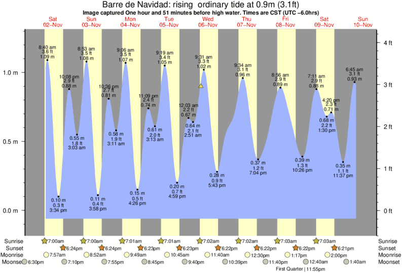 Forecast wind and swell just offshore from Barre de Navidad around the time the photo was taken