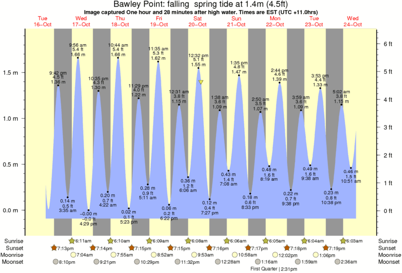 Image captured One hour and 28 minutes after high water (falling spring tide). Tide height was 1.4m (4.5 ft). Range 1.88m (6.2 ft). Toggle tide graph
