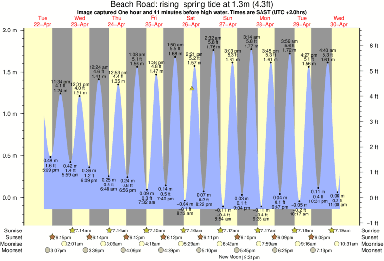 Image captured One hour and 41 minutes before high water (rising spring tide). Tide height was 1.3m (4.3 ft). Range 1.97m (6.5 ft). Toggle tide graph
