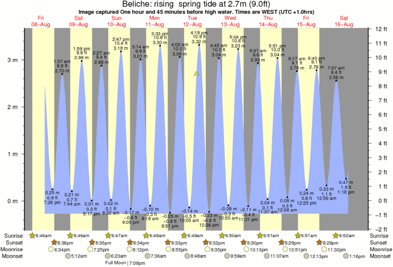 Image captured One hour and 45 minutes before high water (rising spring tide). Tide height was 2.7m (9.0 ft). Range 3.59m (11.8 ft). Toggle tide graph