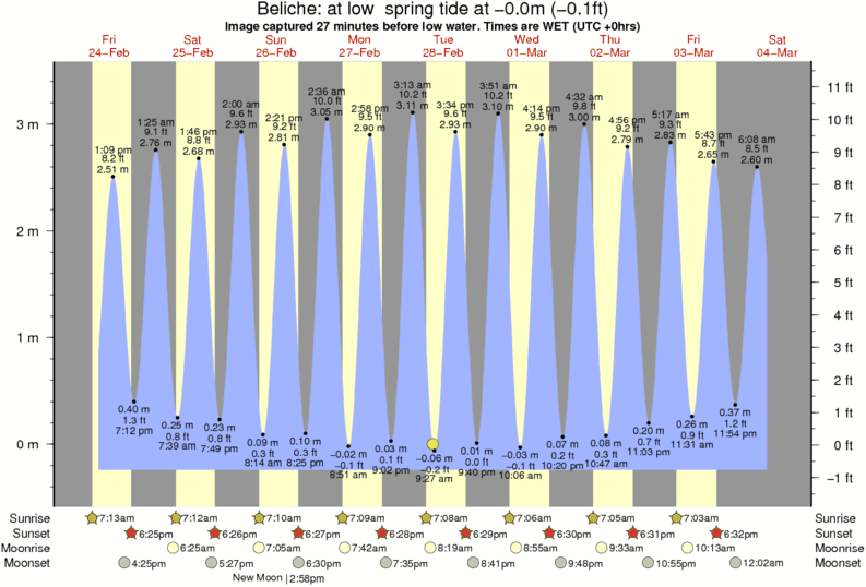 Image captured 27 minutes before low water (at low spring tide). Tide height was -0.0m (-0.1 ft). Range 3.48m (11.4 ft). Toggle tide graph