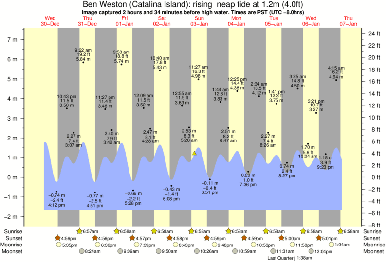 Image captured 2 hours and 34 minutes before high water (rising neap tide). Tide height was 1.2m (4.0 ft). Range 8.40m (27.6 ft). Toggle tide graph