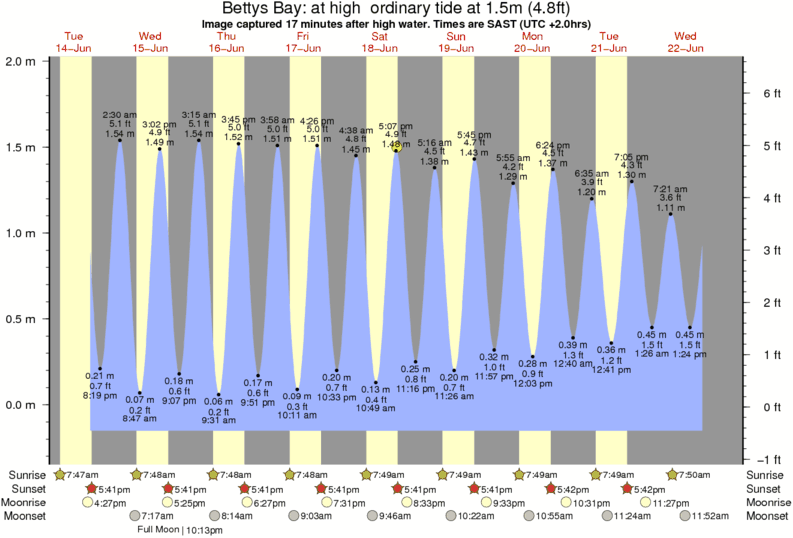 Forecast wind and swell just offshore from Bettys Bay around the time the photo was taken