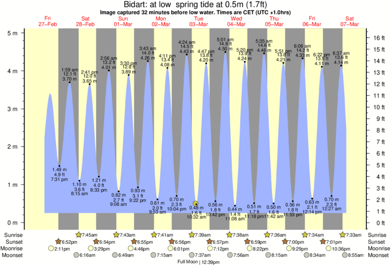 Image captured 32 minutes before low water (at low spring tide). Tide height was 0.5m (1.7 ft). Range 4.43m (14.5 ft). Toggle tide graph