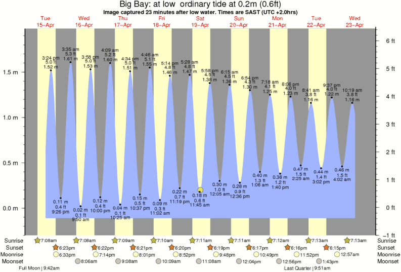 Image captured 23 minutes after low water (at low ordinary tide). Tide height was 0.2m (0.6 ft). Range 1.90m (6.2 ft). Toggle tide graph
