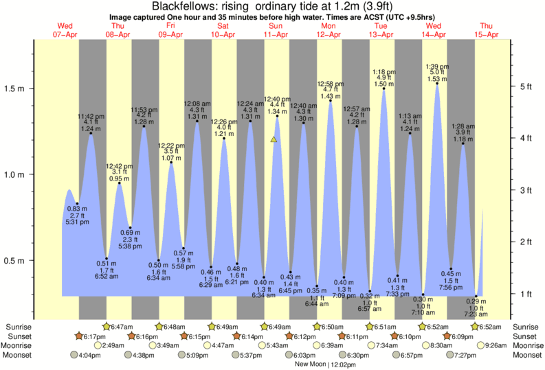 Forecast wind and swell just offshore from Blackfellows around the time the photo was taken