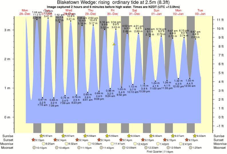 Image captured 2 hours and 6 minutes before high water (rising ordinary tide). Tide height was 2.5m (8.3 ft). Range 3.35m (11.0 ft). Toggle tide graph
