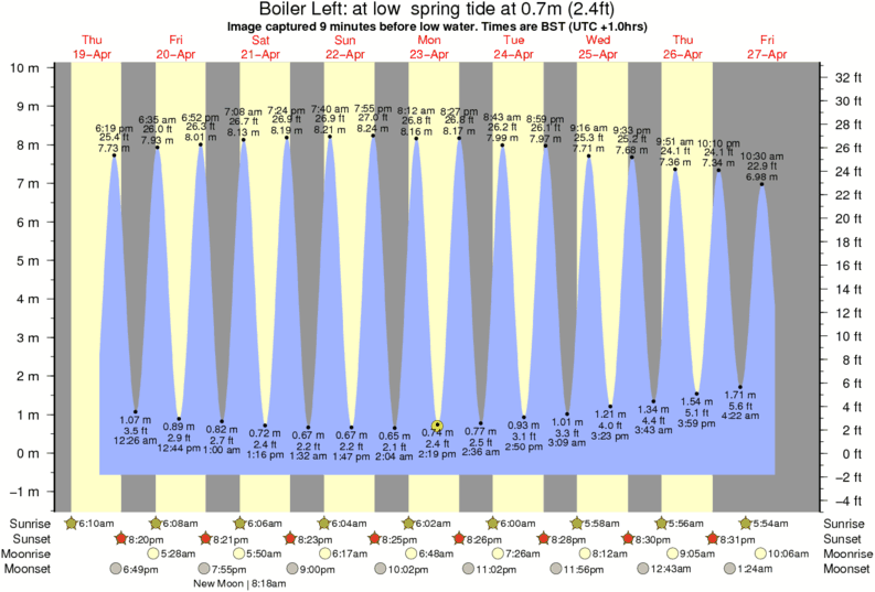 Image captured 9 minutes before low water (at low spring tide). Tide height was 0.7m (2.4 ft). Range 9.73m (31.9 ft). Toggle tide graph