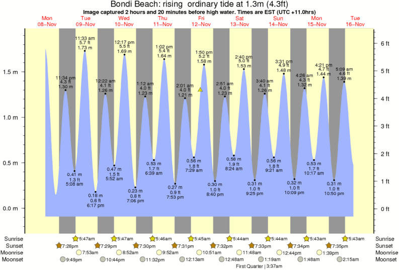 Image captured 2 hours and 20 minutes before high water (rising ordinary tide). Tide height was 1.3m (4.3 ft). Range 1.88m (6.2 ft). Toggle tide graph