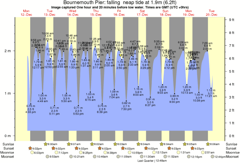 Forecast wind and swell just offshore from Bournemouth Pier around the time the photo was taken