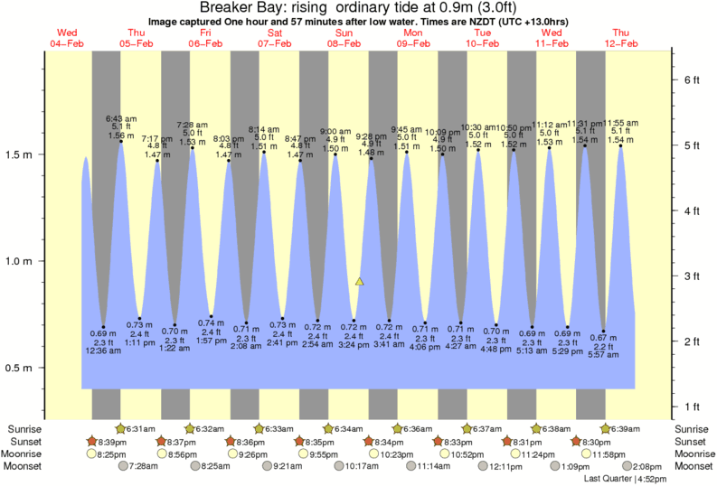Image captured One hour and 57 minutes after low water (rising ordinary tide). Tide height was 0.9m (3.0 ft). Range 1.44m (4.7 ft). Toggle tide graph
