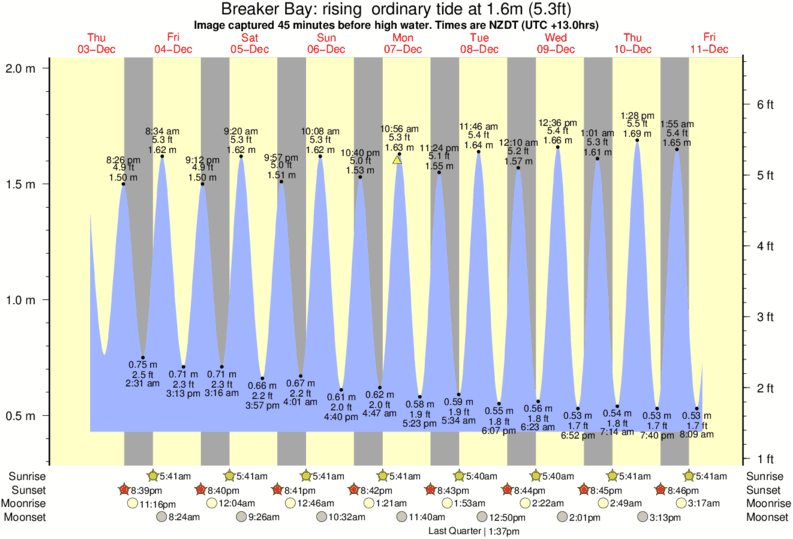 Image captured 45 minutes before high water (rising ordinary tide). Tide height was 1.6m (5.3 ft). Range 1.47m (4.8 ft). Toggle tide graph