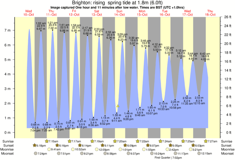 Image captured One hour and 11 minutes after low water (rising spring tide). Tide height was 1.8m (6.0 ft). Range 6.92m (22.7 ft). Toggle tide graph