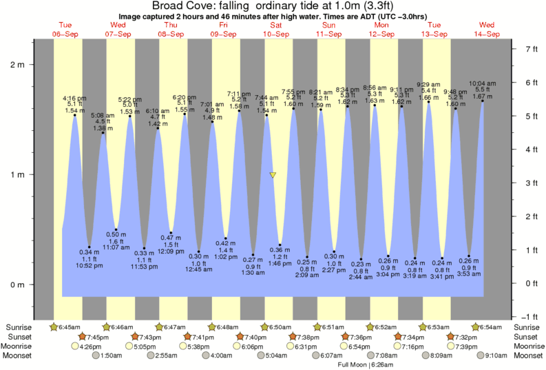 Image captured 2 hours and 46 minutes after high water (falling ordinary tide). Tide height was 1.0m (3.3 ft). Range 2.13m (7.0 ft). Toggle tide graph