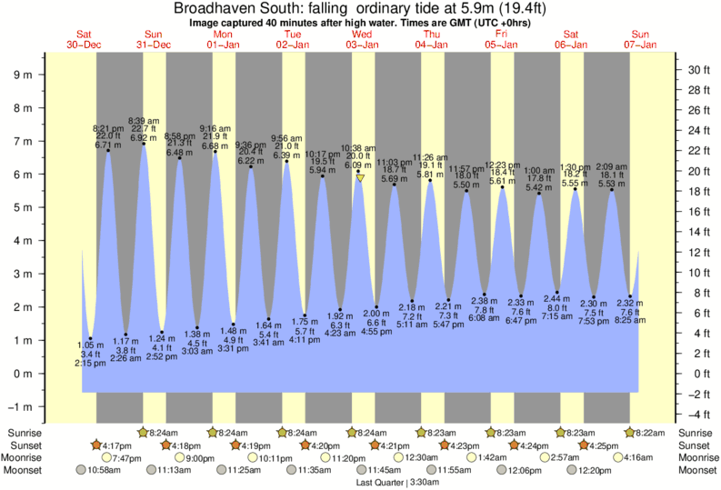 Image captured 40 minutes after high water (falling ordinary tide). Tide height was 5.9m (19.4 ft). Range 9.31m (30.5 ft). Toggle tide graph
