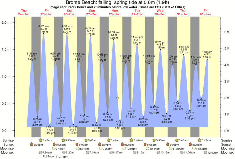 Forecast wind and swell just offshore from Bronte Beach around the time the photo was taken