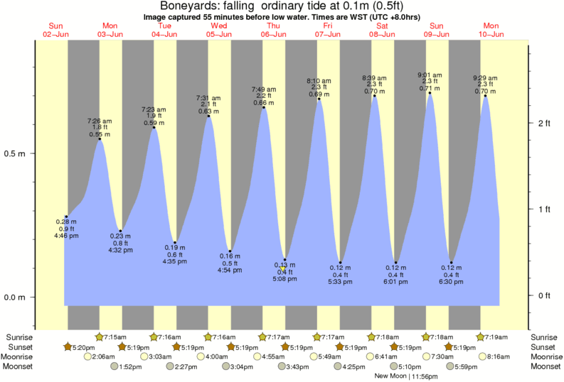 Image captured 55 minutes before low water (falling ordinary tide). Tide height was 0.1m (0.5 ft). Range 0.84m (2.8 ft). Toggle tide graph