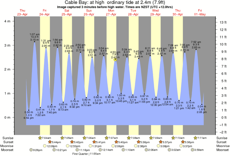 Forecast wind and swell just offshore from Cable Bay around the time the photo was taken