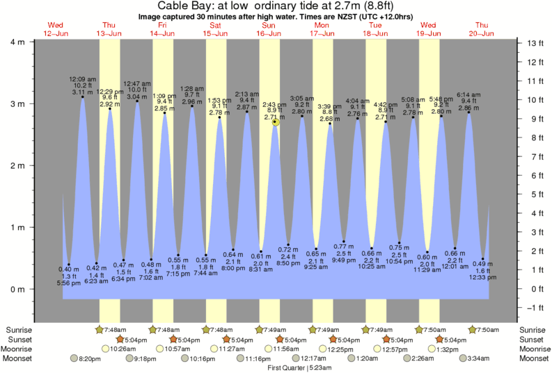 Forecast wind and swell just offshore from Cable Bay around the time the photo was taken