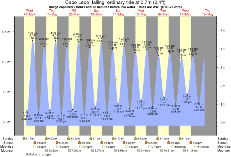 Forecast wind and swell just offshore from Cabo Ledo around the time the photo was taken