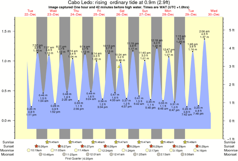 Forecast wind and swell just offshore from Cabo Ledo around the time the photo was taken
