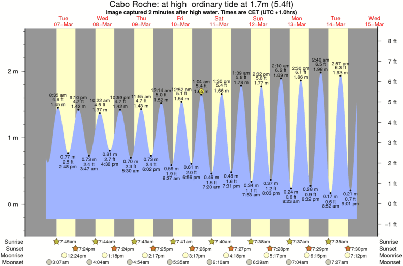 Image captured 2 minutes after high water (at high ordinary tide). Tide height was 1.7m (5.4 ft). Range 2.60m (8.5 ft). Toggle tide graph