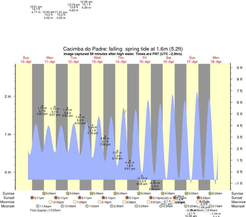 Image captured 59 minutes after high water (falling spring tide). Tide height was 1.6m (5.2 ft). Range 2.78m (9.1 ft). Toggle tide graph