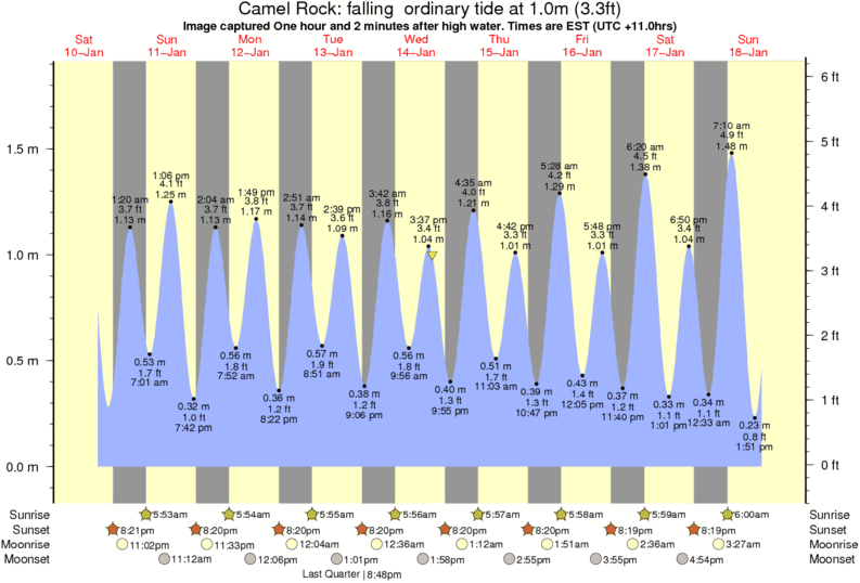 Image captured One hour and 2 minutes after high water (falling ordinary tide). Tide height was 1.0m (3.3 ft). Range 1.74m (5.7 ft). Toggle tide graph