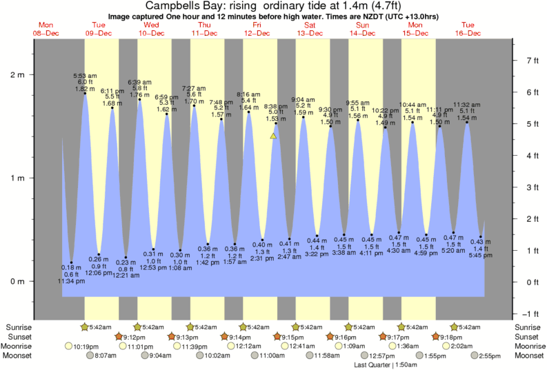 Image captured One hour and 12 minutes before high water (rising ordinary tide). Tide height was 1.4m (4.7 ft). Range 2.27m (7.4 ft). Toggle tide graph