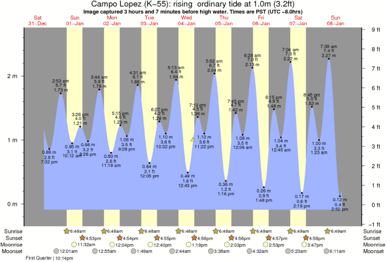 Forecast wind and swell just offshore from Campo Lopez (K-55) around the time the photo was taken