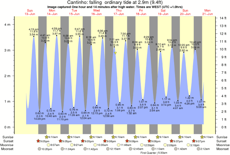 Image captured One hour and 14 minutes after high water (falling ordinary tide). Tide height was 2.9m (9.4 ft). Range 3.83m (12.6 ft). Toggle tide graph