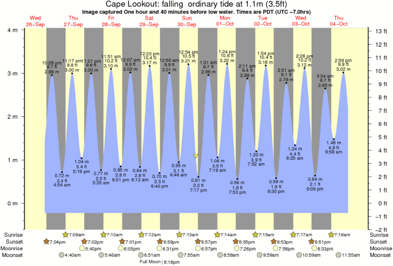 Forecast wind and swell just offshore from Cape Lookout around the time the photo was taken