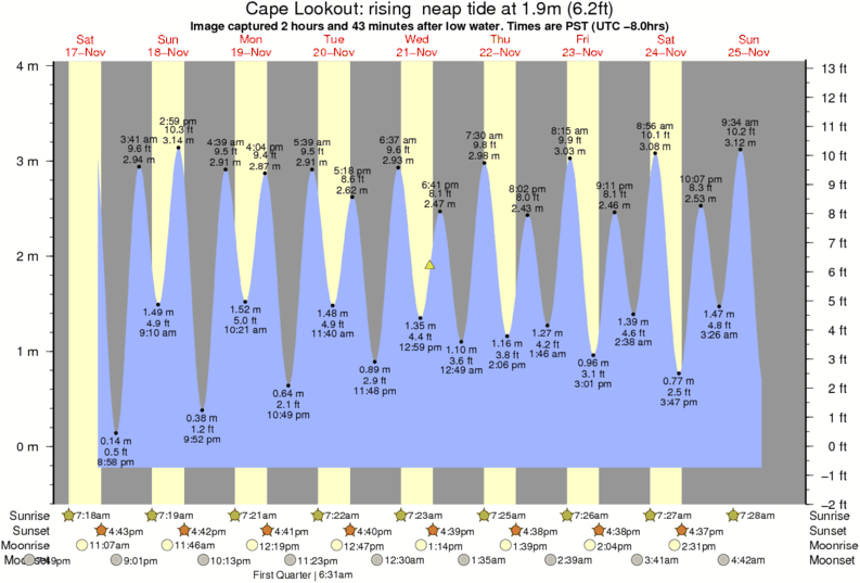 Forecast wind and swell just offshore from Cape Lookout around the time the photo was taken